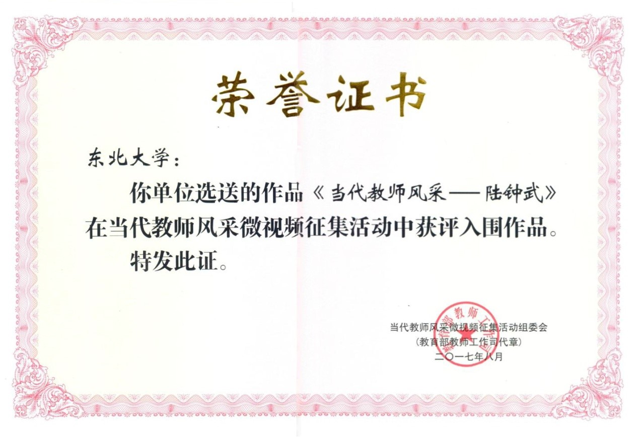 近日,教育部教师工作司公布了“当代教师风采微视频”活动的100部入围名单,我校选送的《当代教师风采—陆钟武》获评入围作品。