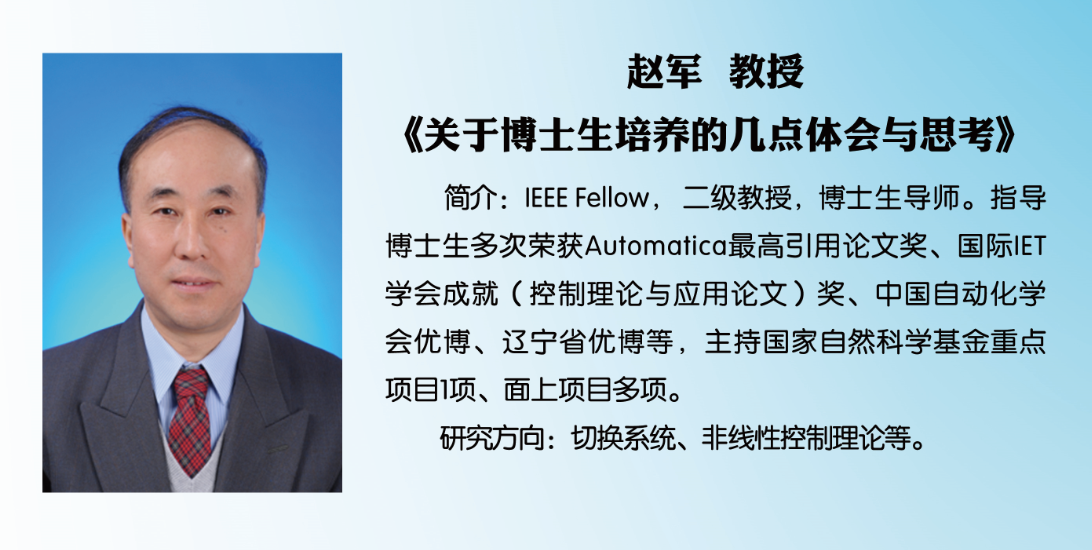 会上,学院赵军教授以“关于博士生培养的几点体会与思考”为题分享了博士生指导方面的心得。赵军表示,育人先育己,博士生导师自身要有严谨务实的学风、认真负责的态度,要终身学习、不断更新知识;同时,育人工作要注重学生思维能力的训练,努力培养出“既立足国际学术前沿,又扎根中国社会实践”的“顶天立地”的接班人。