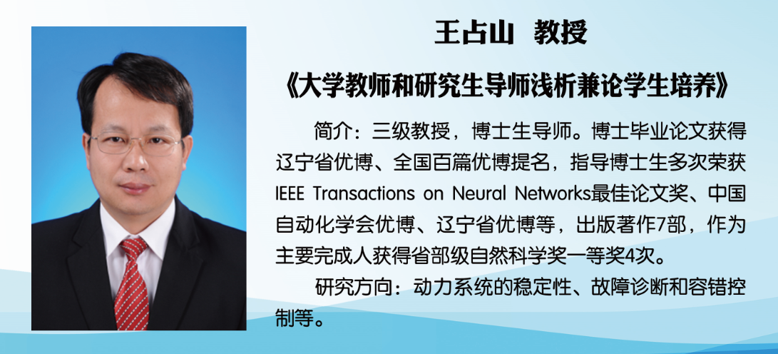 随后,王占山教授以“大学教师和研究生导师浅析兼论学生培养”为题分享了研究生培养经验。王占山表示,研究生导师要做到能力配位、德行配位,不断培养出比自己更加优秀的人才,培养出符合社会需求的高水平创新人才,尽最大可能释放人才发展潜力,这是新时代导师的首要职责。