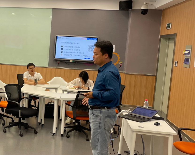 7月15日,混合式课程建设与教学应用主题工作坊如期开展,计算机科学与工程学院高克宁教授就混合式课程定义、课程资源持续化建设建议、教学方法改革与创新以及混合式一流课程申报等内容进行经验分享,最后提出教师要秉承开放创新的理念不断更新课堂模式。