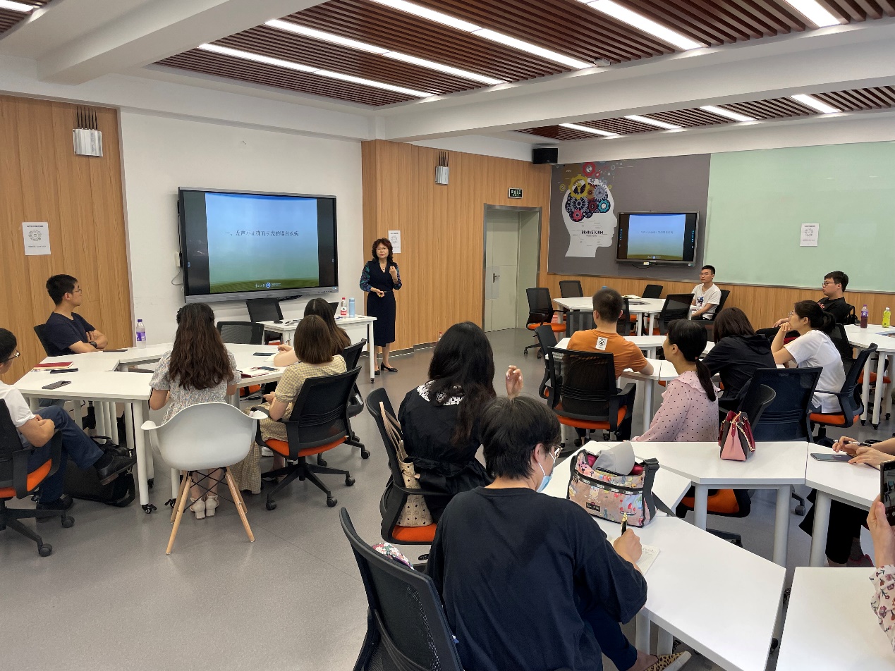 6月25日,科学发声训练主题工作坊,由艺术学院郑顺女教授为教师进行科学发声指导。郑顺女首先介绍了发声不正确而引发的嗓音问题和健康问题,随后亲自示范正确的发音方法与嗓音保健,最后指导教师进行“四个用力、六个放松”发声练习。本期培训使教师掌握了科学的发声方法,教师在课堂教学中科学发声不仅有助于个人保健,更有助于提升课堂教学效果。