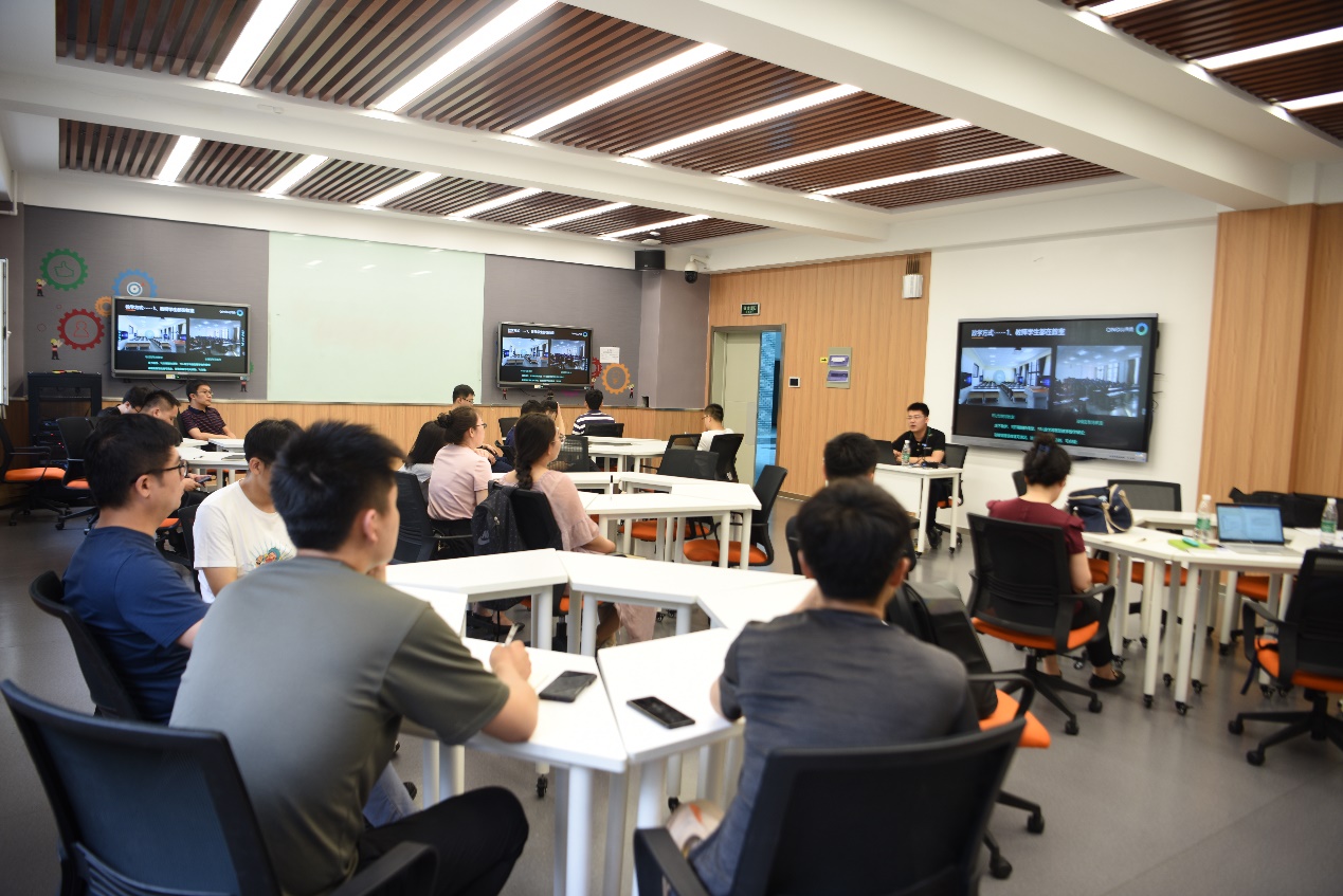 随后,“智慧教室”设备及智能白板一体机的使用技巧工作坊活动中,广州青鹿教育科技有限公司闫剑雄经理和沈阳井沐诚科技有限公司曹继正工程师对教室里的设备操作进行了详细的讲解和实践操作指导,演示了如何使用“智慧教室”及智能白板等设备实现师生课堂实时互动。通过培训,参训教师掌握了智能设备使用方法,能够有效利用智能设备开展智慧教学。