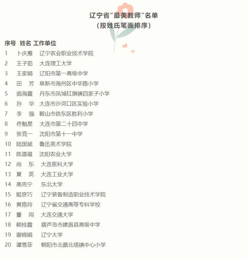 近日,中共辽宁省委宣传部和辽宁省教育厅公布2021年辽宁省“最美教师”名单,我校计算机科学与工程学院高克宁教授入选。辽宁省“最美教师”评选工作是由省委宣传部、省教育厅共同发起,旨在弘扬人民教师潜心育人、默默奉献的高尚师德,进一步加强师德师风建设,营造尊师重教的良好社会风尚,为辽宁省教育事业发展贡献力量。经各教育局和高校推荐、专家评审等程序,共有20人入选2021年辽宁省“最美教师”。
