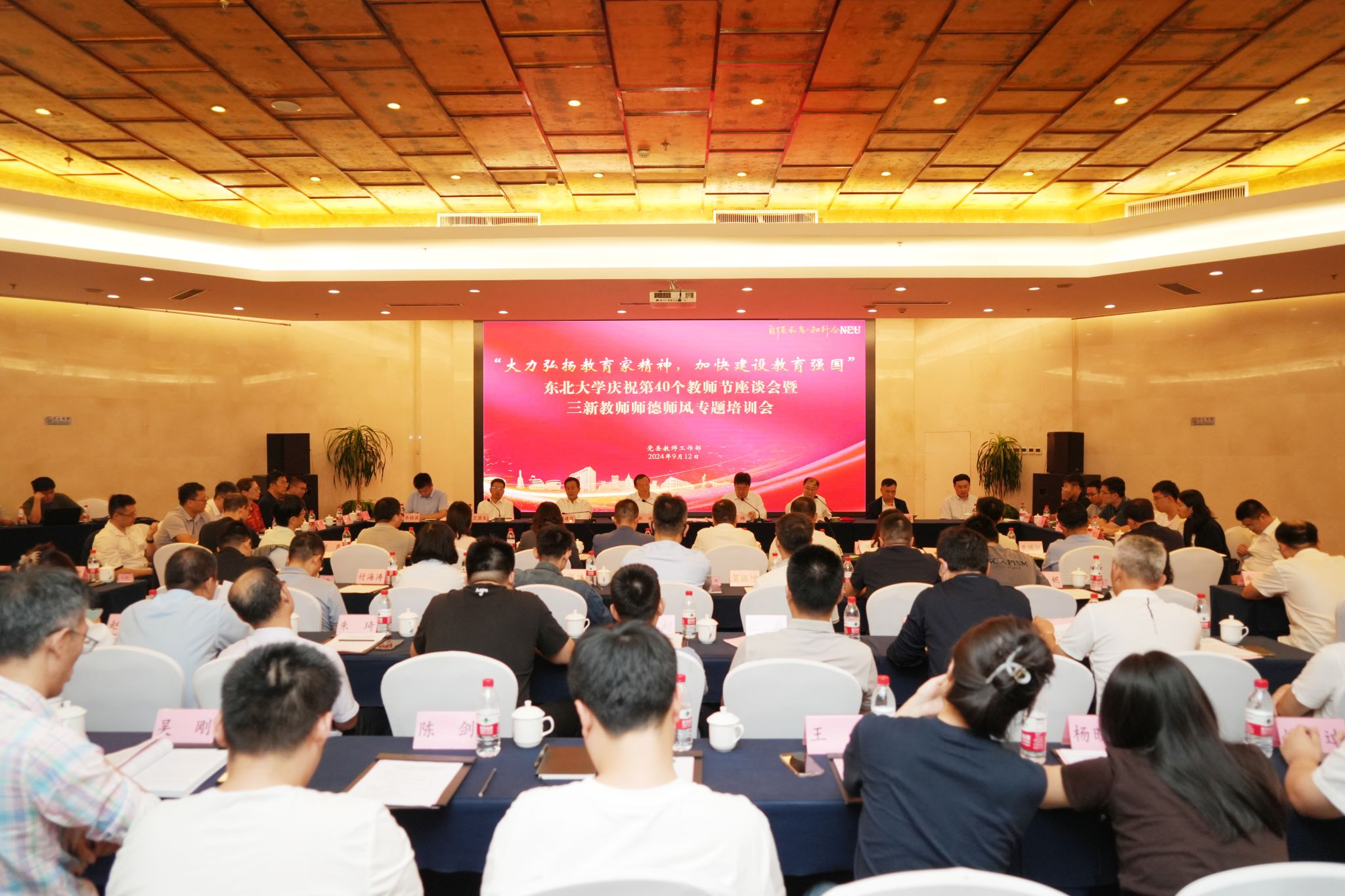 9月12日,东北大学庆祝第40个教师节座谈会暨三新教师师德师风专题培训会在国际学术交流中心举行。校党委书记郭海、党委副书记张皓出席会议,2023年、2024年新晋升教授职称教师,近一年新入职教师,新认定博士生导师代表,以及党委教师工作委员会成员单位负责人参加会议。张皓主持会议。