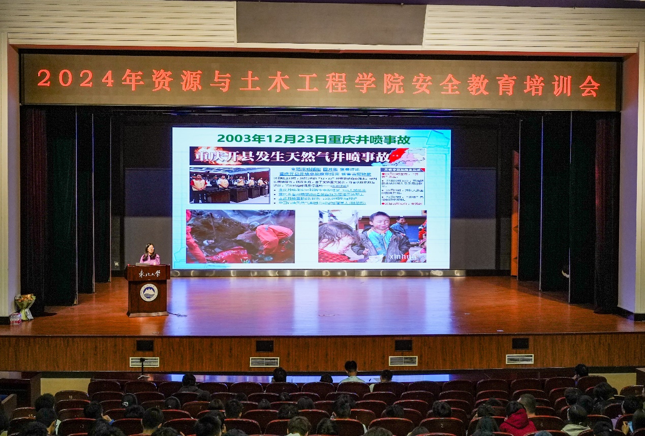 10月12日下午,资土学院2024年度安全教育培训在汉卿会堂蔡冠深学术报告厅举行,培训由安全工程系张培红教授主讲,学院党委副书记、副院长(兼)刘婉婷主持,全学院2024级本、硕、博新生和近两年入职的教师参加。