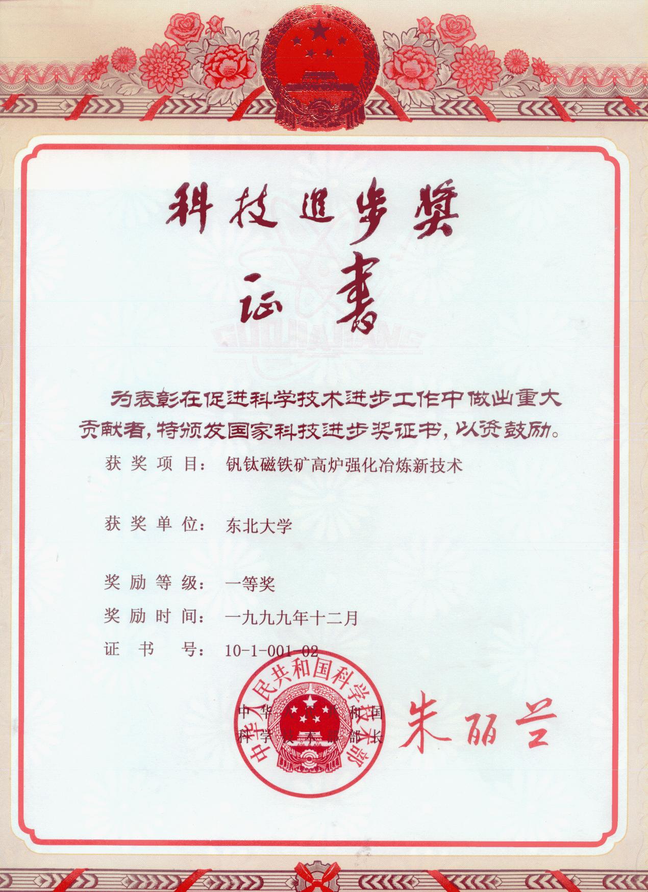 从冶金部“攀枝花钒钛磁铁矿高炉冶炼试验”起步,他与攀钢携手合作,将理论与实践完美结合,在科研之路上攀上一个又一个高峰。1999年,攀钢炼铁厂、公司全厂推广高炉强化冶炼工艺,获得巨大成功,开创了大高炉低品位、难炼特殊矿高指标的典范,钒钛磁铁矿高炉强化冶炼新技术于1999年12月获得国家科学技术进步奖一等奖。