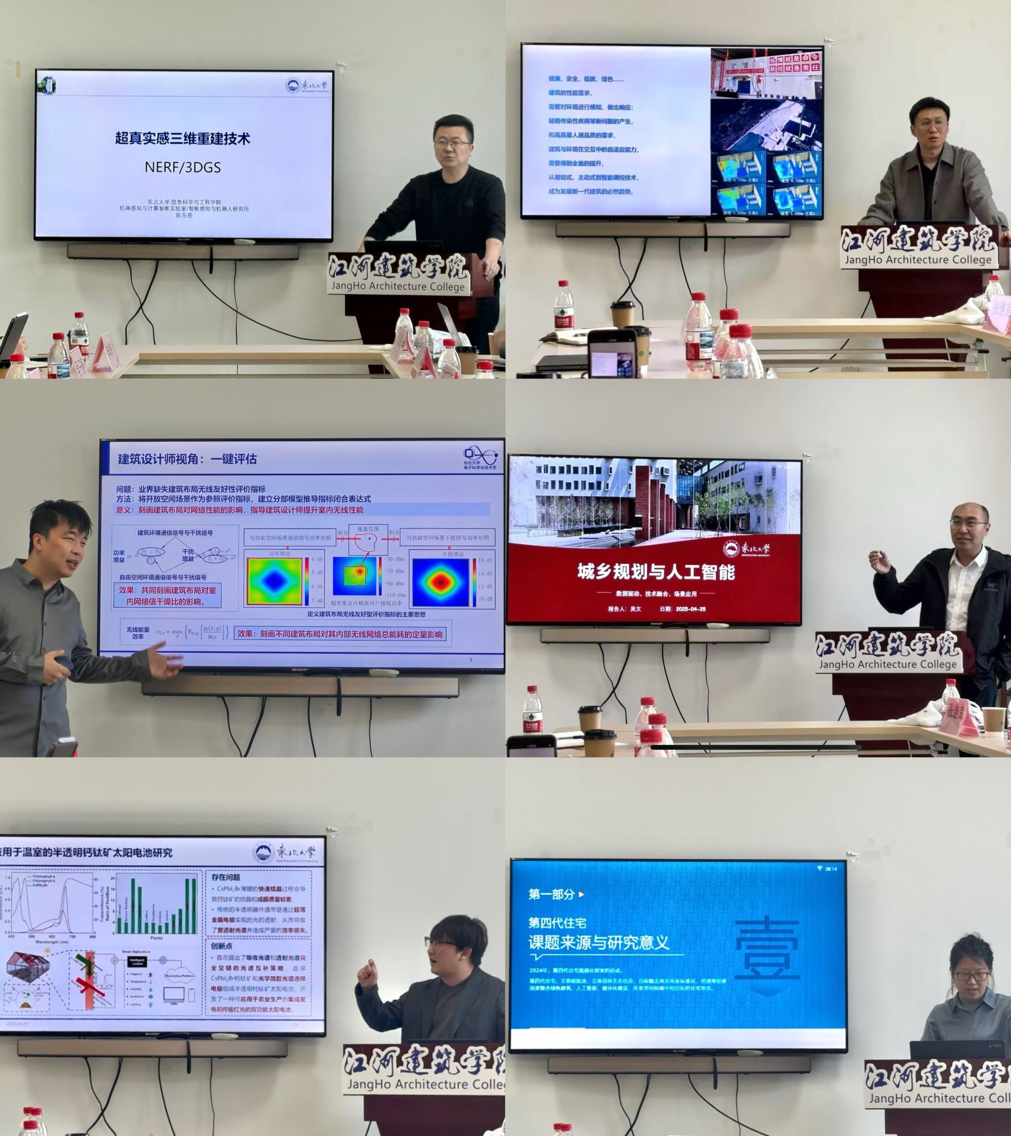 来自信息学院、机器人学院及江河建筑学院的多名教授、专家围绕“三维重建技术”“建筑物无线性能评估”“无机钙钛矿性能及稳定性提升策略”“建筑环境感知与智能调控”“城乡规划与人工智能”“第四代住宅研究”等主题作学术报告,分享前沿学术成果,探索学科交叉创新点。与会人员围绕科研合作、技术对接、教学改革等三大议题展开热烈研讨,达成多项初步合作共识。