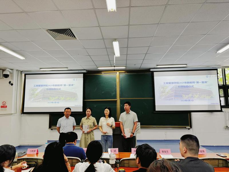 6月3日,工商管理学院2025年新任课教师“第一堂课”引荐勉励仪式在信息学馆A101教室顺利举行。工商管理学院党委书记韩斌、副院长贾建锋出席活动。