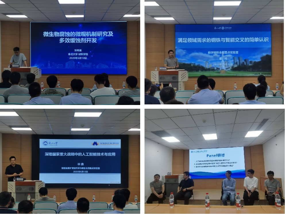 张岩峰介绍了学院智能科学与技术交叉学科博士点建设情况。数字钢铁全国重点实验室唐帅教授、材料科学与工程学院张明星教授、深部金属矿智能开采与装备全国重点实验室毕鑫副教授分别作交叉学科领域学术报告。