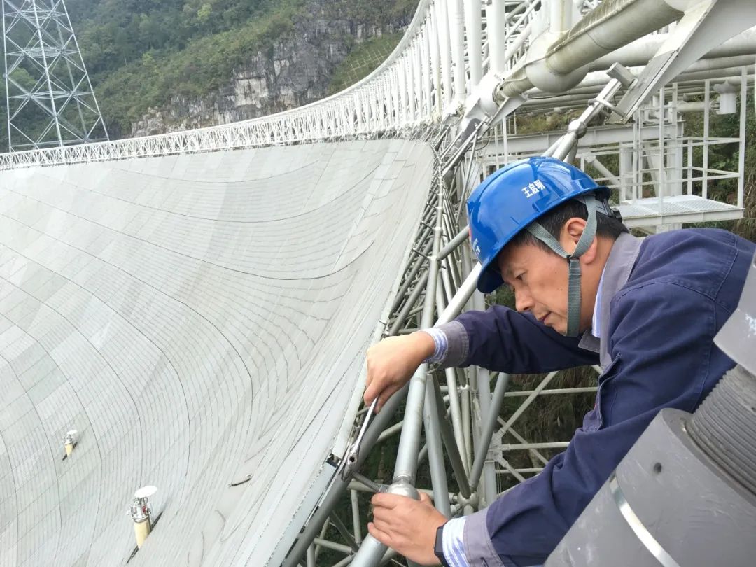 “项目从开工到竣工,刚好是2011天。”所有与FAST相关的数字,王启明总是能脱口而出。“确保FAST工程按期完成”是项目团队立下的“军令状”,自2013年设备开始进场以来,王启明几乎每年三分之二的时间都在工地驻守。他经常穿梭在地面布线缆、地上跑车运输材料,空中还在吊装、走线、测试等施工现场……作为总工艺师,他要做无数协调工作,及各类设计方案评审,技术交底、开工报告等等,经常忙得上下翻飞,即使是春节期间,他也是最后一个离开现场。