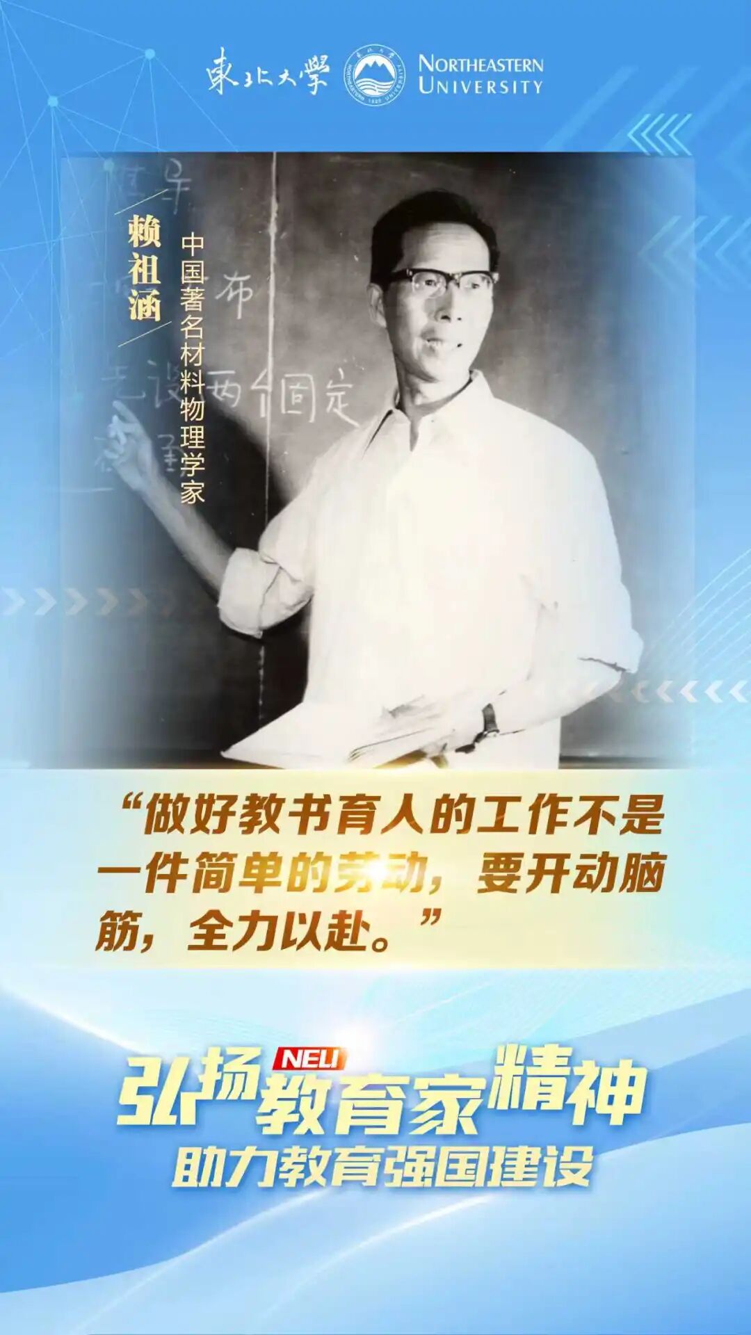 教育家的身影,是穿透时代的精神灯塔;三尺讲台的故事,是滋养心灵的永恒诗篇。我们怀着敬意叩响历史之门,寻访老教育家的生命印记。这些泛黄教案里凝结的智慧和白发皱纹中镌刻的坚守,不仅是个人奋斗的注脚,更构筑起东北大学育人兴邦的精神谱系。他们以不同姿态共同诠释着:对育人使命的虔诚,对真理追求的炽热,对后辈成长的托举。