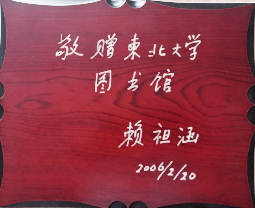 2月17日,缠卧病榻的赖祖涵先生委托家人给学校图书馆去电,想要将此书捐赠,并用工整而苍劲有力的笔迹在书名页写下“敬赠东北大学图书馆 赖祖涵2006/2/20 ”。当时因为笔误写错了日期,所以赖老才将日期往后改,改成20日,但没想到他却没有等到这一天。